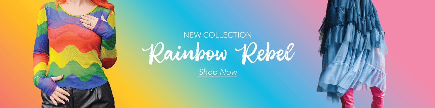 Like everything we do, the Rainbow Rebel collection is ethically made and fully size inclusive. Every single piece, from the mesh tops to the tiered skirts, is available in sizes EU 32 to 66. We believe joy comes in every size, and your clothes should fit you perfectly, not the other way around.