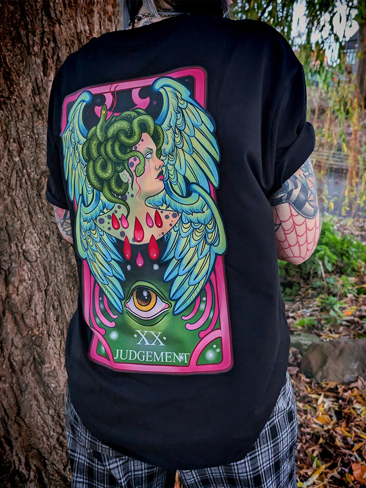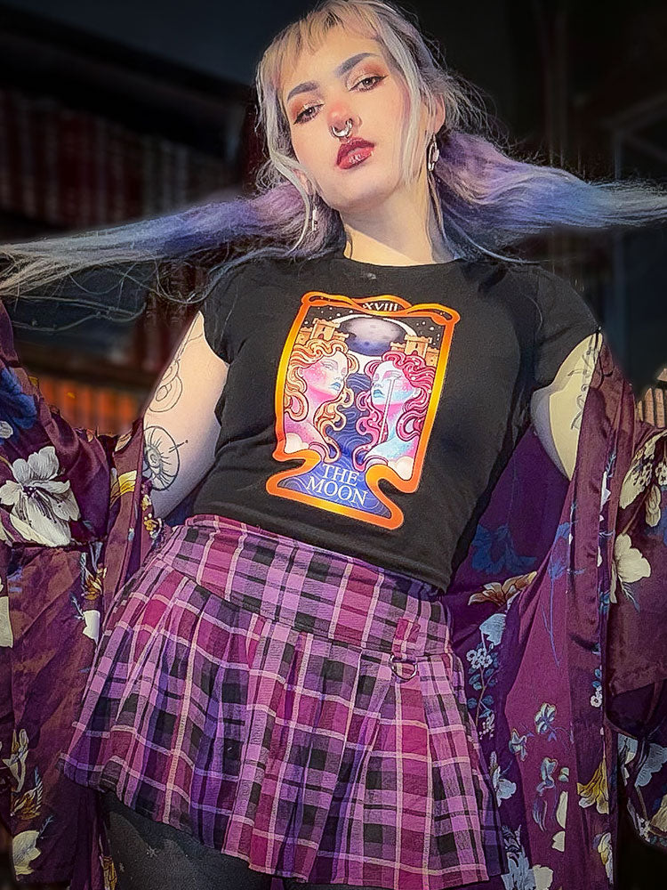Find your arcana in our super-soft organic cotton tees: choose hope with The Star Unisex T-shirt, or classic comfort with the oversized Judgement Unisex Tee. For new silhouettes, go for positivity with The Sun Baby Tee (a fitted, cropped cut), or explore your intuition with The Moon Baby Tee. If you're drawn to the new cropped Boxy shape, choose mystery with the High Priestess or dance in the shadows with The Devil Boxy Tees.