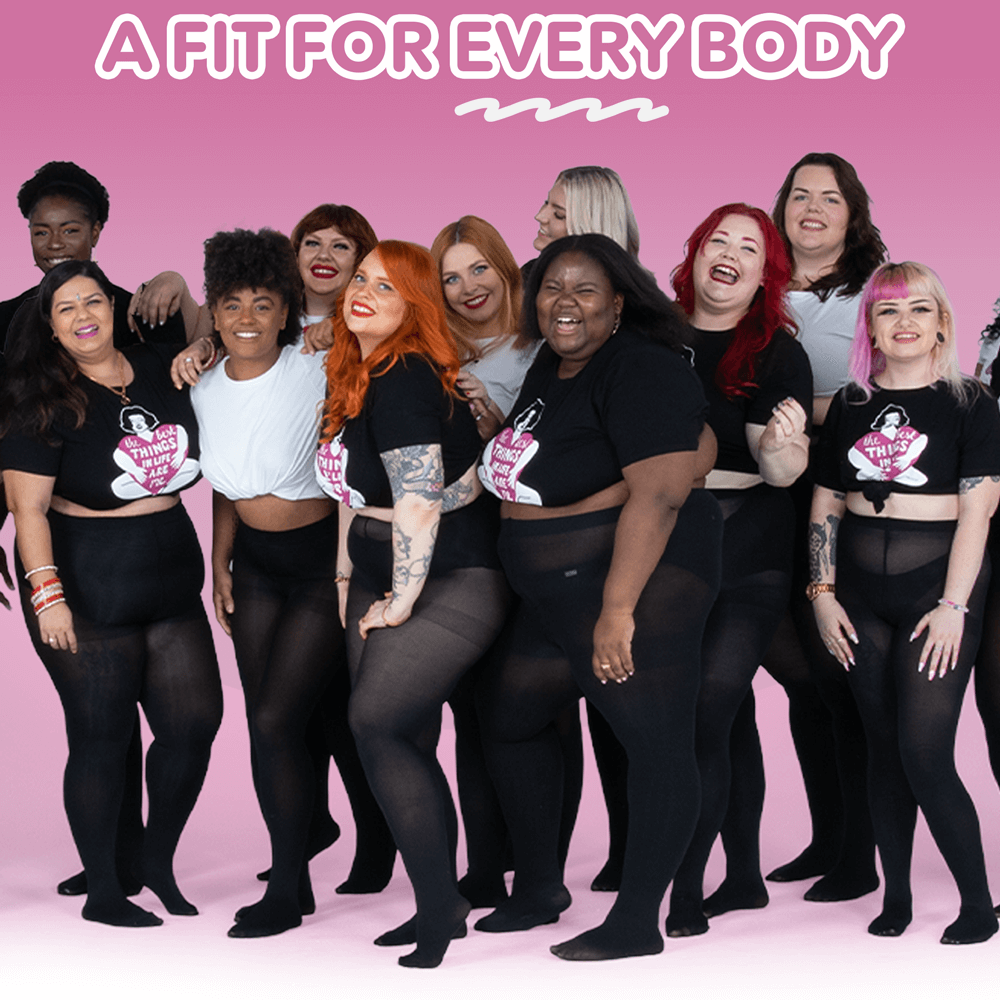 Instead, we have different, easy-to-use size guides for our tights and our clothing, all based on real body measurements. Just follow the size guide here on the product page to find your perfect fit!