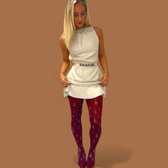 Meet Festive Forest, the ultimate festive tights for anyone who wants a little extra sparkle this season. With a cosy opaque burgundy base and shimmering silver Christmas trees scattered in different sizes up the legs, these tights create a magical winter scene that catches the light beautifully. They are an instant mood-lift and a perfect way to bring a glimmer of festive cheer to any outfit.