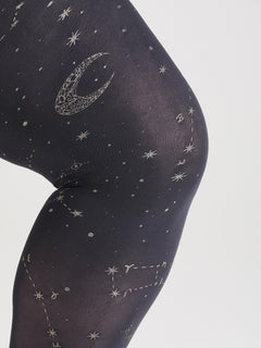 Hallow-queen are the perfect wearble witchy tights. A black 80 denier base with dreamy moon and stars design in gold glitter. Perfect all year round thanks to breathable yarn. No digging, in, no rolling down or sagging. Subtle enough to be worn for all occassions, these are a hidden gem that you need in your tights collection.
