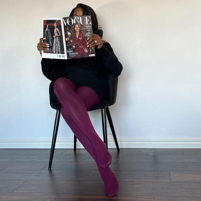 Introducing Mulberry, our new 80 denier shade in the deepest, richest purple wine tone. Fruity, bold and beautifully polished, this colour is pure luxury for your legs. It’s indulgent, sophisticated and guaranteed to add a splash of glamour to any outfit. Bringing back memories of the old children’s rhyme “Here we go round the mulberry bush”, sung since the 1800s to teach little ones how to lead a good, clean life of virtue – wash your face, comb your hair, brush your teeth, put on your clothes. Back then it was all about clean living, but our Mulberry is about living your best life with colour that feels both indulgent and empowering.