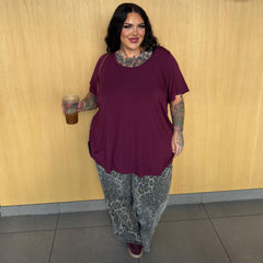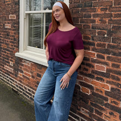 The cut is where it really shines. A soft scoop neckline frames your face and flatters the bust, while the fit sits neatly at the shoulders before flowing into a gentle, longline flare that skims over your tummy without clinging. It moves beautifully with your body, giving shape without restriction and coverage without heaviness. The bum-covering length makes it perfect with anything from jeans to leggings, whether you’re heading out, staying in or winding down for the night.