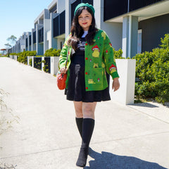 Style it with jeans and a tee for instant joy, layer it over a dress for playful contrast, or button it up and let the frogs do all the talking. Deep practical pockets are built in too, because cute should always be functional.