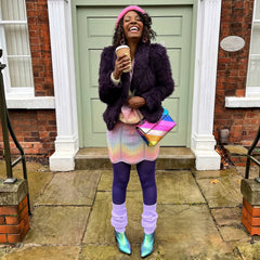 Let’s get physical in Madge periwinkle retro knitted leg warmers. We've developed and trialled our legwarmers with a lipoedema patient to create legwarmers that will truly fit ALL sizes of legs - stretch, length, width, quality- we've got your (legs) covered.