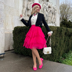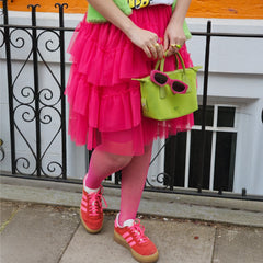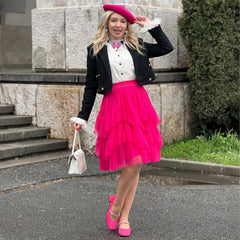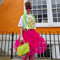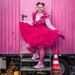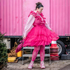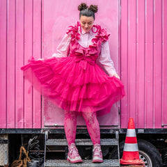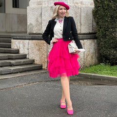 Some outfits are clothes. This one is a moment. The Mesh Skirt in Pomegranate is all about movement, drama and that feeling like you've just stepped onto your own film set. Three tiers of soft mesh create that floaty, swishing silhouette that catches the light and turns heads, while the bold pink shade makes sure all eyes are on you.