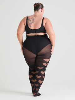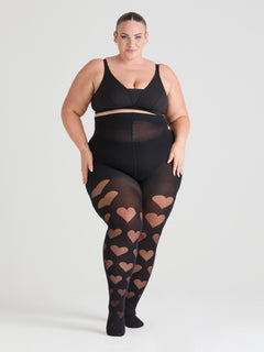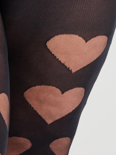 Wear your heart on your legs with our black One Love patterned tights with the sheer heart design knitted right in. With 12 inches of multi-dimensional stretch, these tights are comfy enough to wear all day long. They are ladder-resistant and sure durable to last, no disposable tights here.