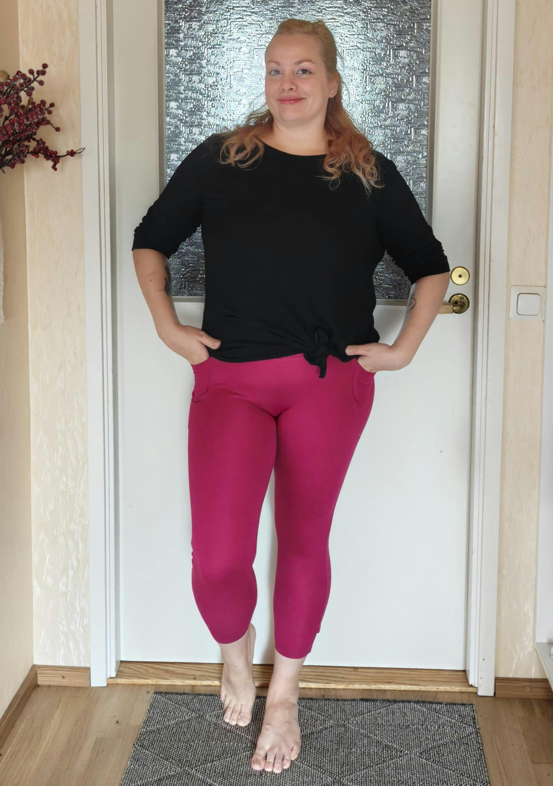 Snag Squat-Proof Short Leggings can handle whatever you throw at them. Designed to fit everybody, and really fit, they won't sag, dig in or roll down. They have nice deep pockets and are totally opaque. Made with sustainable fabric, they are butter soft, easy to get on and comfy enough for all day wear. In a gorgeous vibrant pink, these really are the best leggings you'll ever wear.