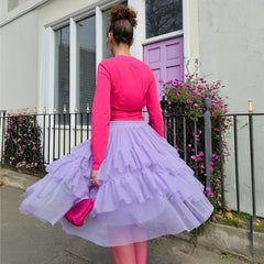 Some days call for drama. Some days call for softness. This skirt does both. The Mesh Skirt in Lavender is all about that floaty, weightless feeling that makes everything feel a little more magical. Three tiers of soft mesh move with you, catching the light and creating that effortless, dreamy silhouette that turns everyday moments into something more.