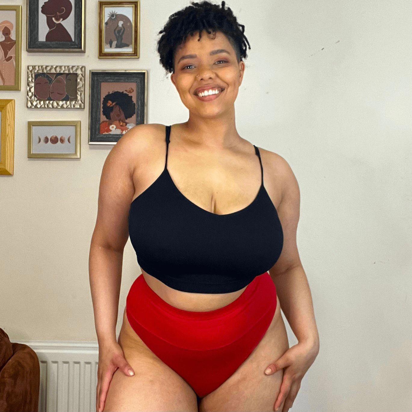 Classic black, high-waisted thong that will keep your belly in place all day while flashing your bum. This thong is actually comfortable, with full coverage in the front and a stay-put waistband. They won't sag, roll down or dig in and are comfy enough to wear all day, every day.