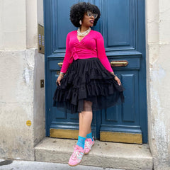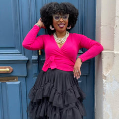 This is the top that pulls everything together. The one you reach for when you want to feel instantly styled without overthinking it. The wrap design creates that flattering, sculpted shape, while the Pomegranate shade brings bold, confident energy to any outfit. It works with the matching skirt, it works with jeans, it works with whatever your day looks like.